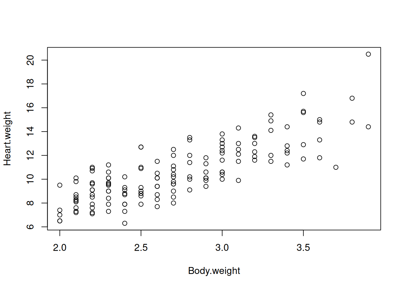 plot(Heart.weight ~ Body.weight, data = d.cats)