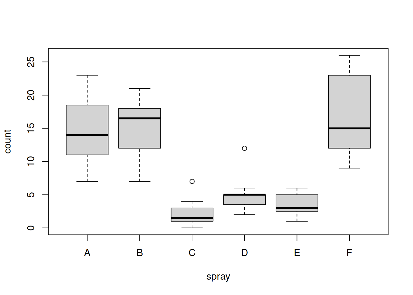 glm(formula = count ~ spray, family = "quasipoisson", data = InsectSprays)