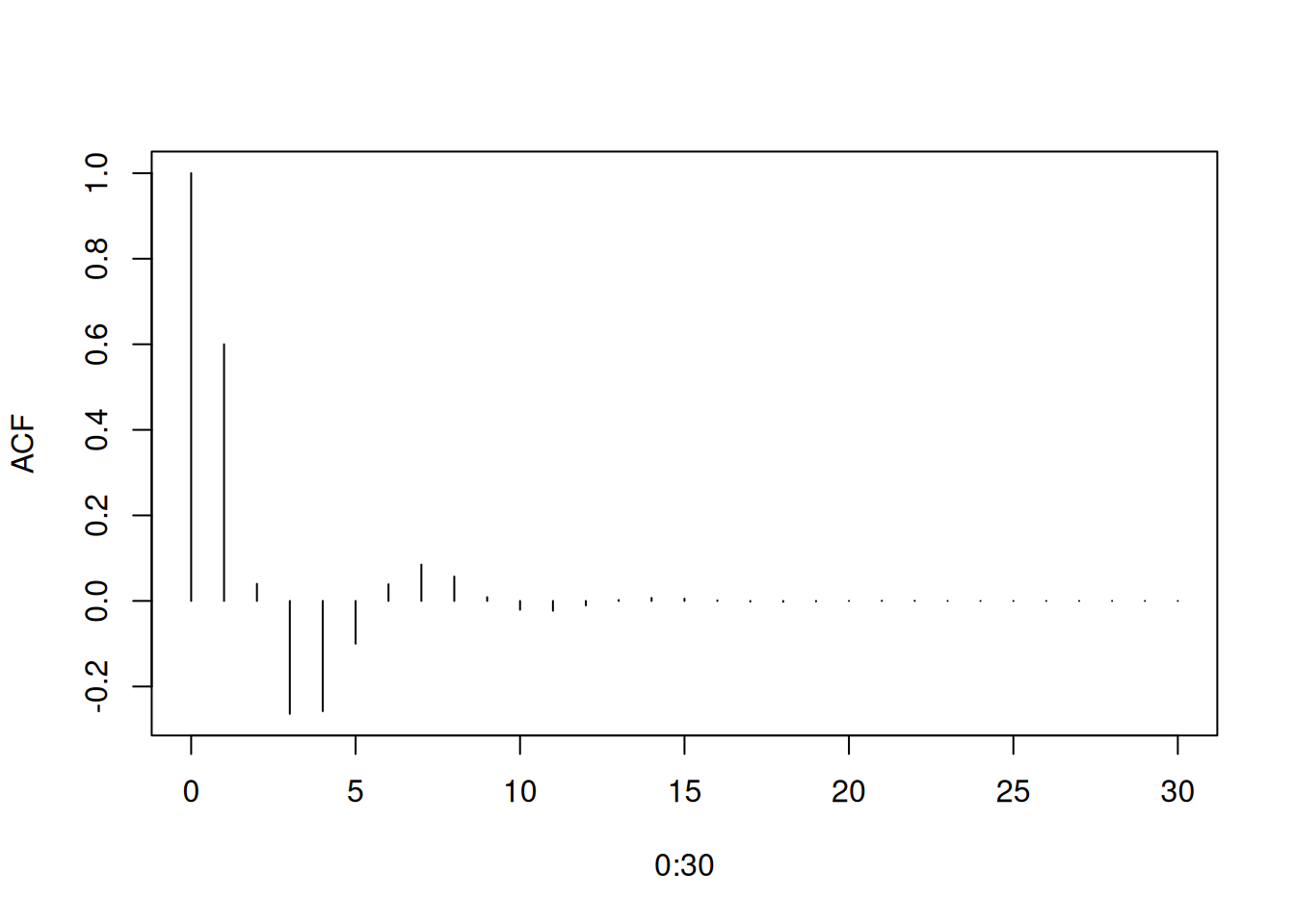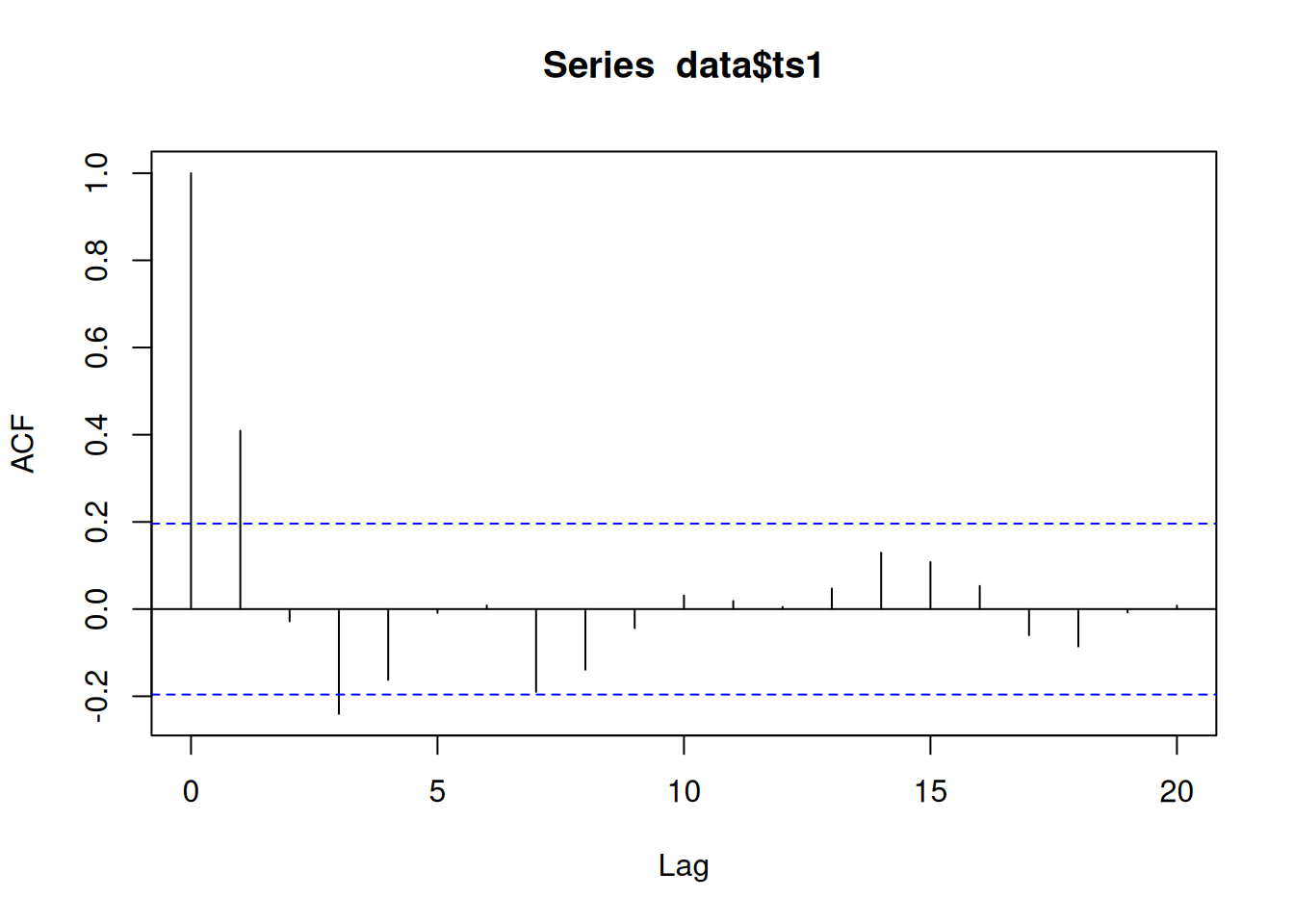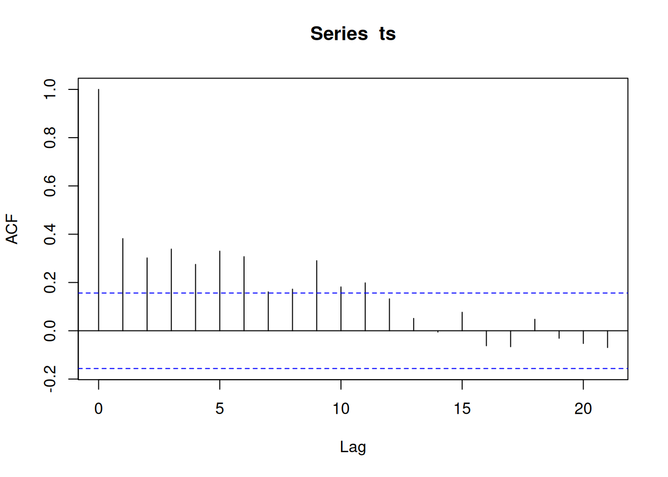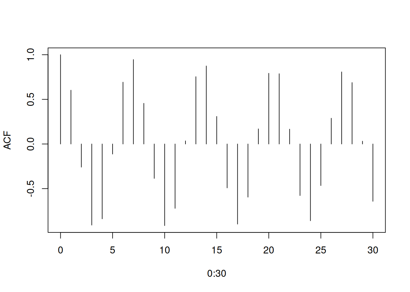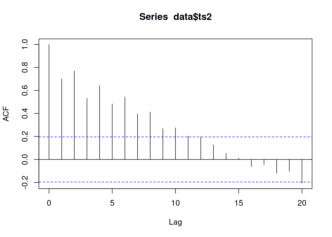At this time, it is not advisable to examine the ACF because the time series is not stationary. We can see trends and seasonality over time. We need to clean that up first before analysing the time series.