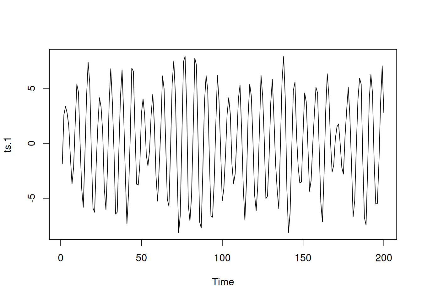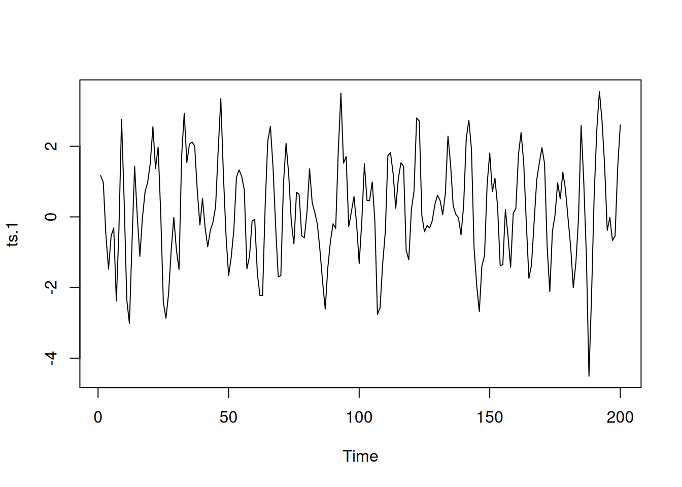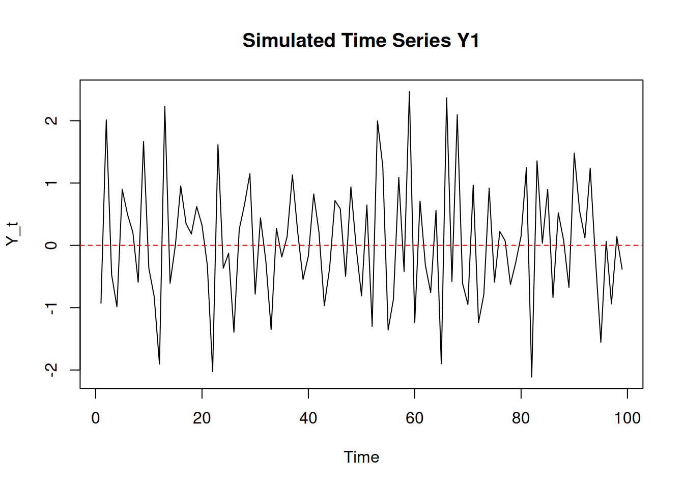 plot(ts.y1, main="Simulated Time Series Y1", ylab="Y_t", xlab="Time")