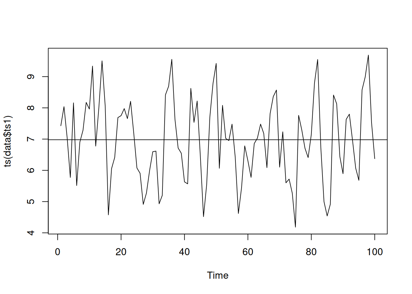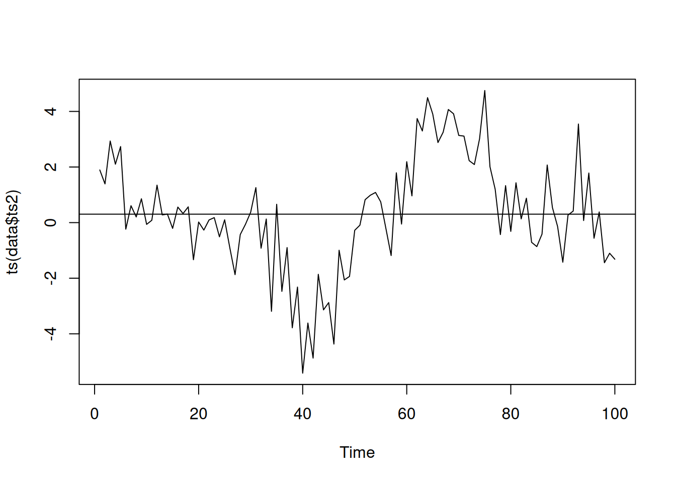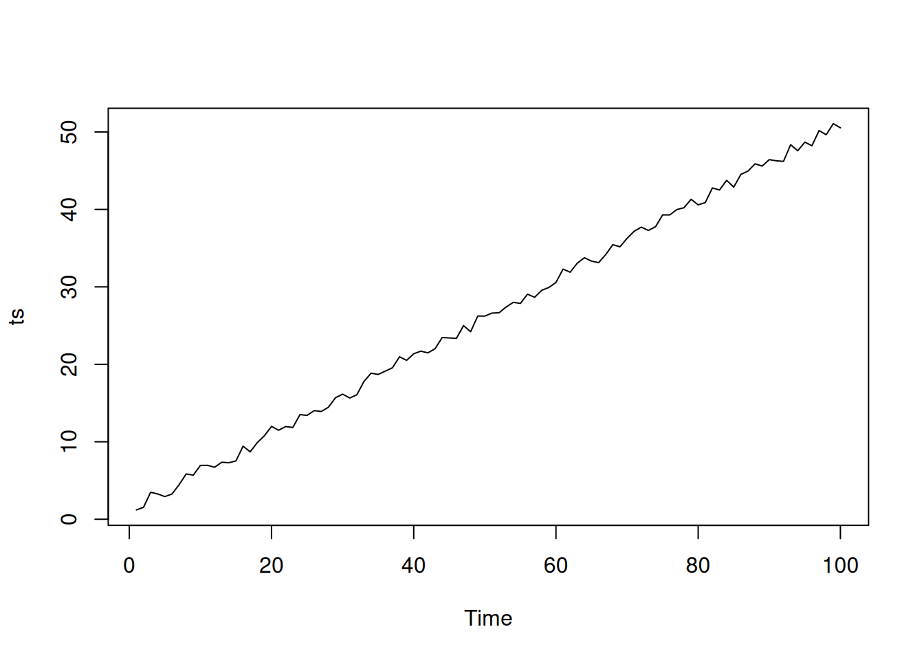data <- 0.5 * t + 1 + runif(100, -1, 1)