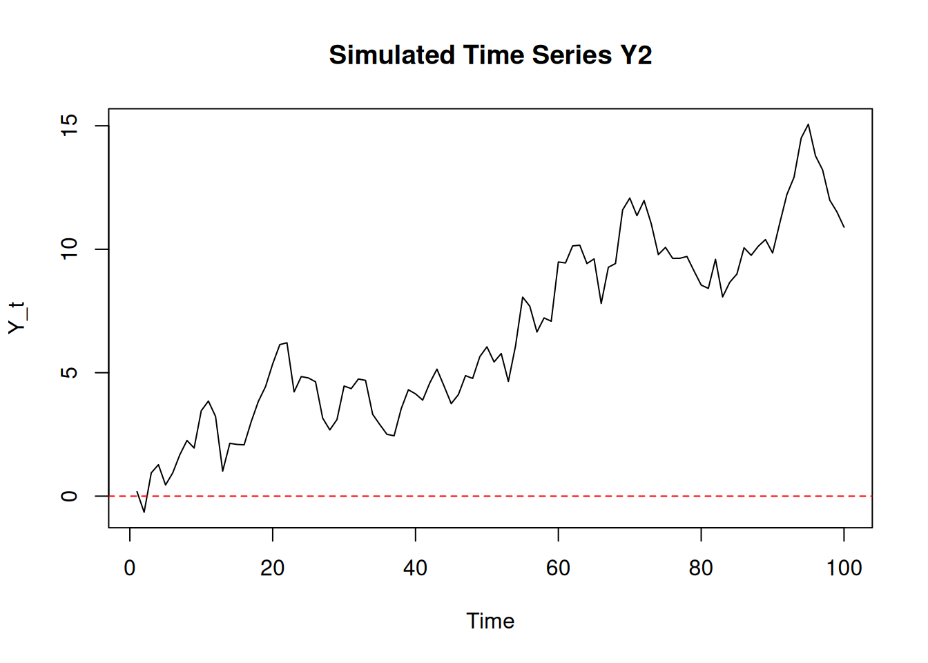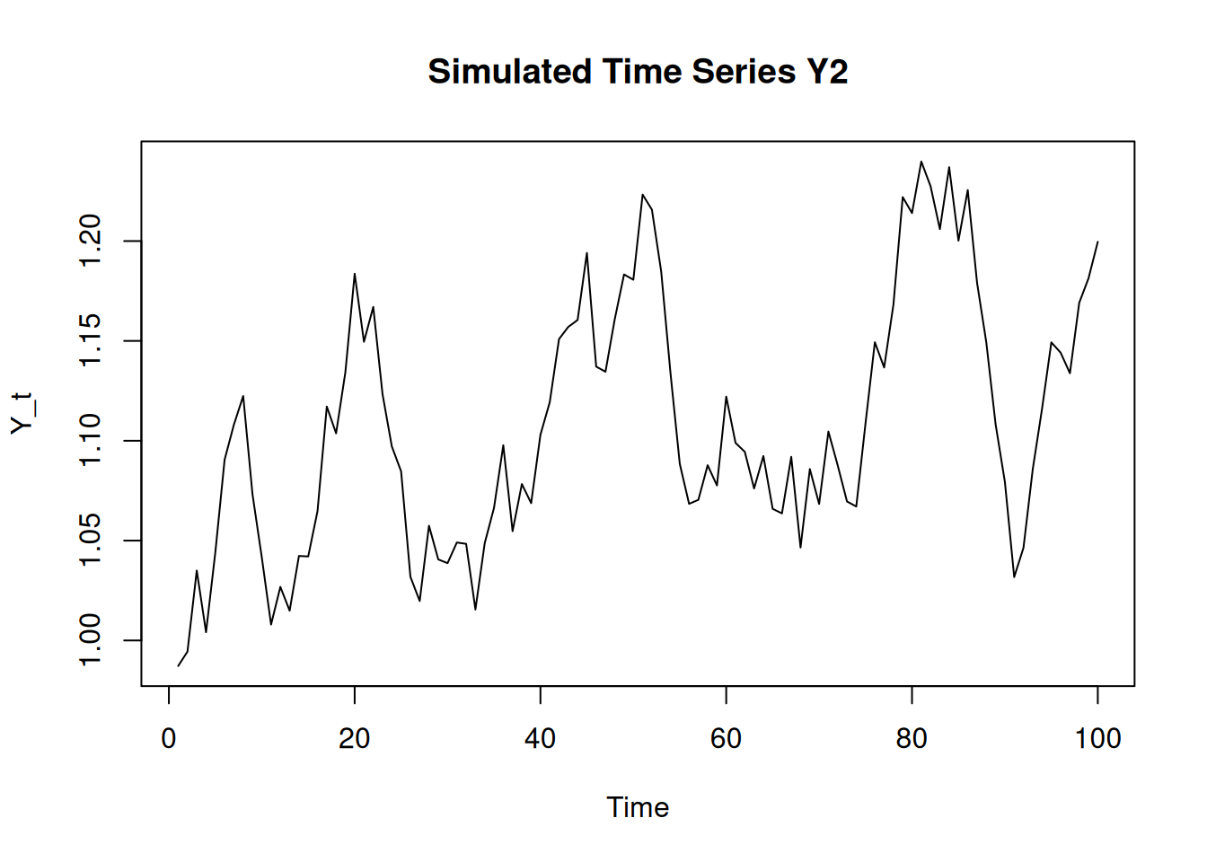 plot(ts.y1, main="Simulated Time Series Y2", ylab="Y_t", xlab="Time")
