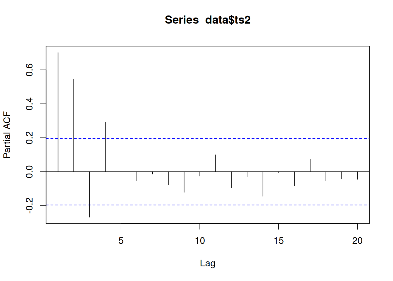 The time serie 1 seems to be a \(ACF(2)\)-process.