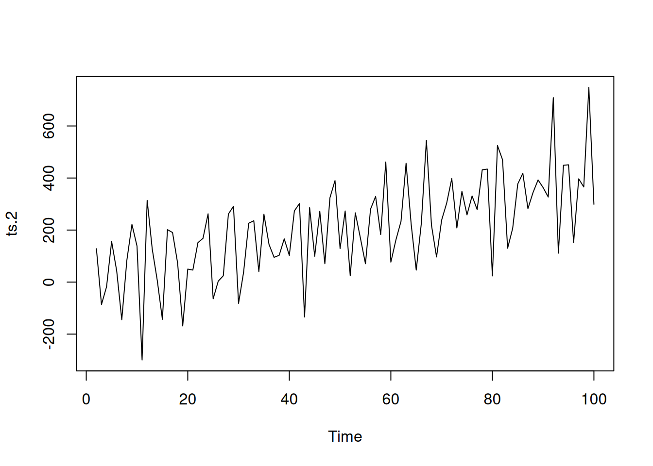 Since we applied backward differencing twice, the length of the output time series increased to 98.