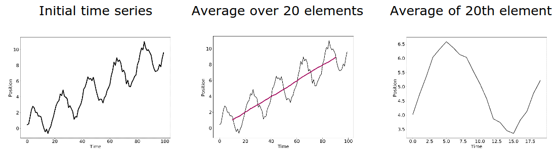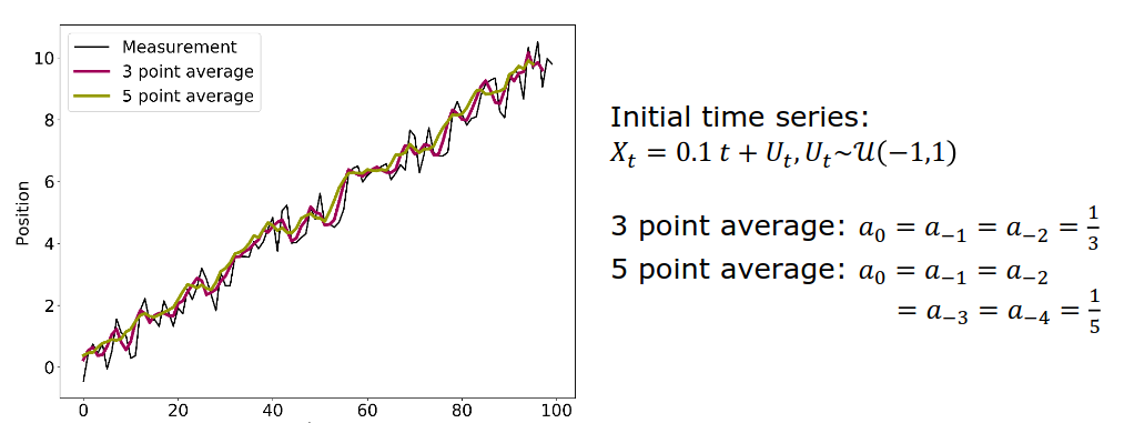 By averaging measurements, we obtain a new averaged time series. By increasing the number of averaged measurements, the parts converges to the expectation value of the measurement error, i.e. 0.