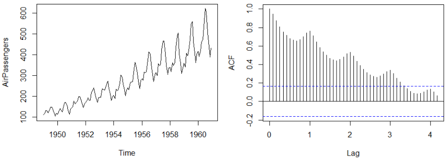 The correlation \(p(k)^2\) squared corresponds to the percentage of variability explained by the linear association between \(X_t\) and \(X_{t+k}\).