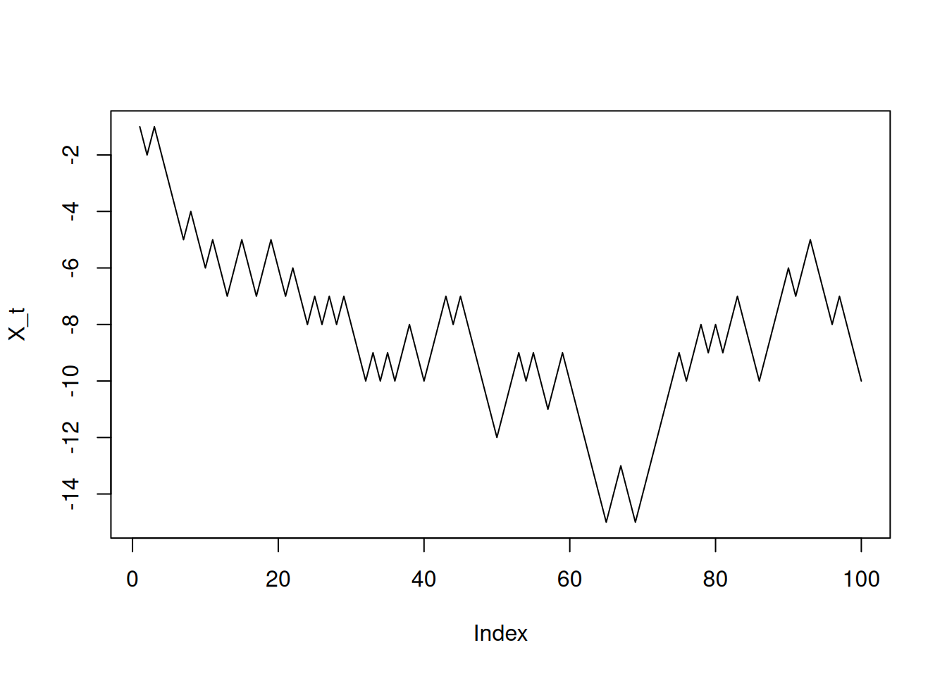 where \(e_t\) is random with equal probability for \(-1\) and \(1\).