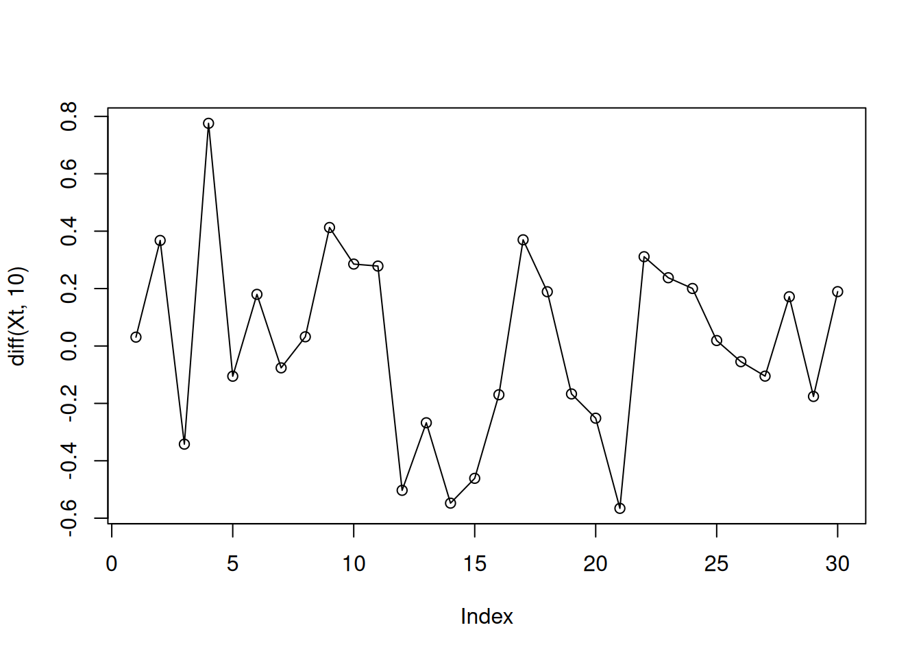 Instead of the original time series 𝑋𝑡, consider the log-transformed time series with the elements.