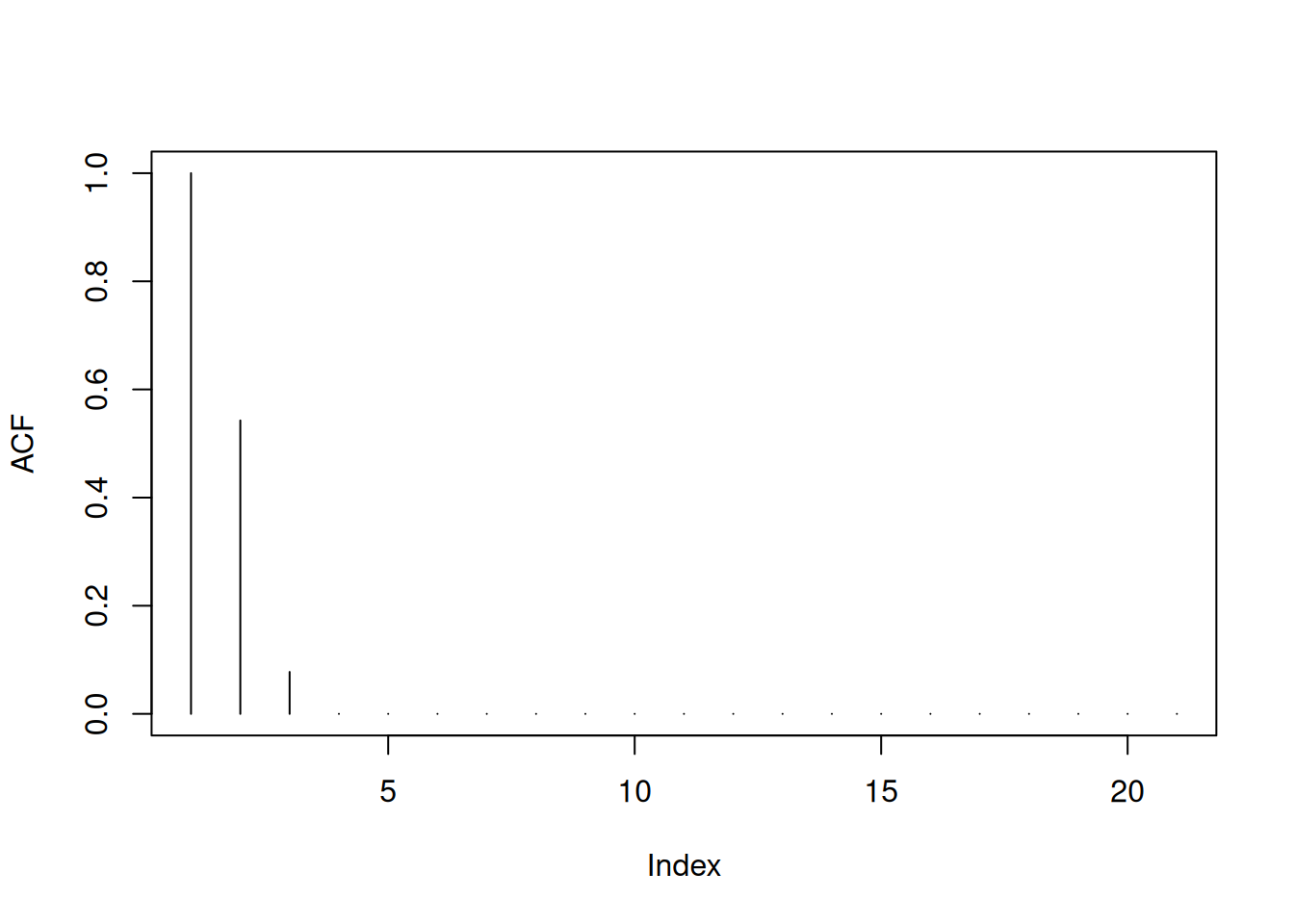Generalization: In general, we can show that the autocorrelation function of an \(MA(q)\) vanishes for all lags larger than \(q\).