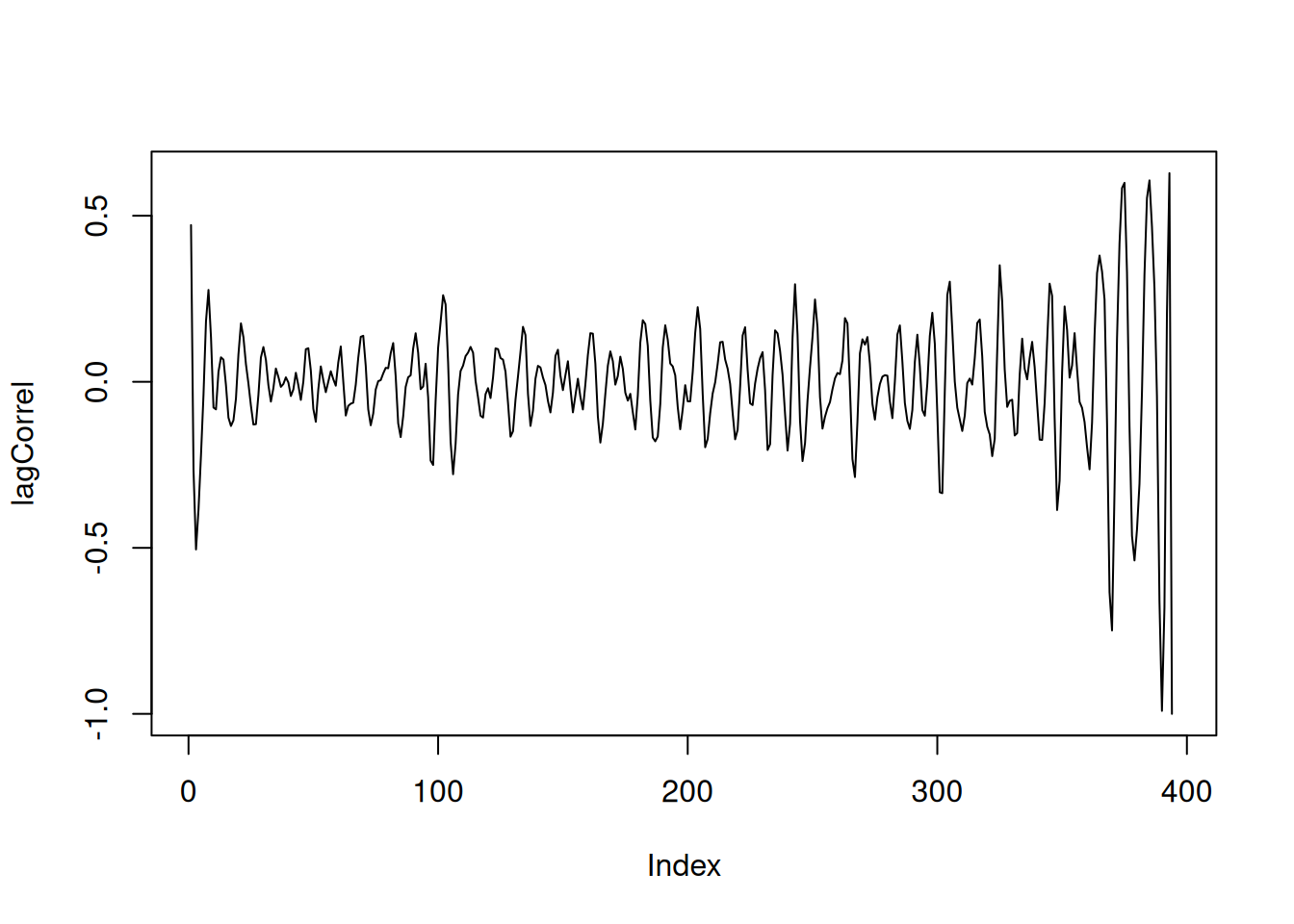 The plug-in estimator is the standard approach to computation autocorrelations. Calculated with an acf function in R.